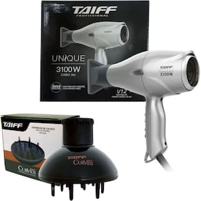 SECADOR DE CABELO PROFISSIONAL TAIFF UNIQUE 3100W - 220VAgora é definitivamente a maior potência do mercado!Característica/Ação-Cabo 3 Metros- Tampa Traseira removível- Botão de jato de ar frio- Íons Negativos para selar as cutículas dos fios- Motor ProfissionalDIFUSOR DE AR CURVES TAIFF