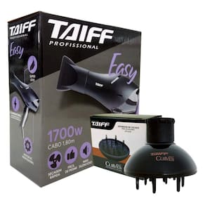SECADOR DE CABELO PROFISSIONAL TAIFF EASY 1700W - 127VO secador Taiff Easy, com 1700w de potência e 127v, é ideal para uso pessoal. Proporciona agilidade na secagem e na modelagem dos cabelos.Possui motor ac profissional com maior durabilidade, chave seletora que combina temperaturas e velocidades, e permite mobilidade na medida certa com o cabo de 1,80 metro de comprimento.VELOCIDADE – 3TEMPERATURAS – 2Difusor Taiff para modelar os cabelos.Imagens meramente ilustrativas.Todas as informações divulgadas são de responsabilidade do Fabricante/Fornecedor.