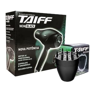 Secador de Cabelo Taiff New Black 1700W 127 Volts com Difusor de Cachos A Taiff conhece bem a vaidade da mulher, por isso traz o secador New Black com 1.700W de potência, 6 combinações de velocidade e temperatura, inclusive ar frio, e emissão de mais de 67 milhões de íons negativos por cm³ durante o uso. Com ele você muda o visual em pouco tempo, e vai ficar com um penteado digno de elogios, pois o New Black da Taiff elimina o efeito frizz dos fios, tornando o resultado final muito mais bonito e duradouro.