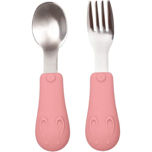 O kit de talheres Buba é especialmente projetado para crianças com mais de 6 meses de idade. Possui cabos feitos de silicone seguro e durável, proporcionando uma aderência confortável para as mãos pequenas do bebê. Os cabos em silicone são macios ao toque, facilitando o manuseio e evitando escorregões acidentais.
