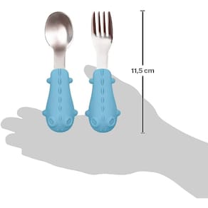 Descrição O kit talheres cabo em silicone da Buba é super resistente e higiênico. Possui um garfo e uma colher com cabo macio em silicone e personagem divertido, ideais para atrair a atenção na hora da papinha. Perfeito para alimentação dos pequenos.