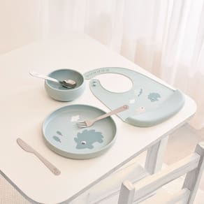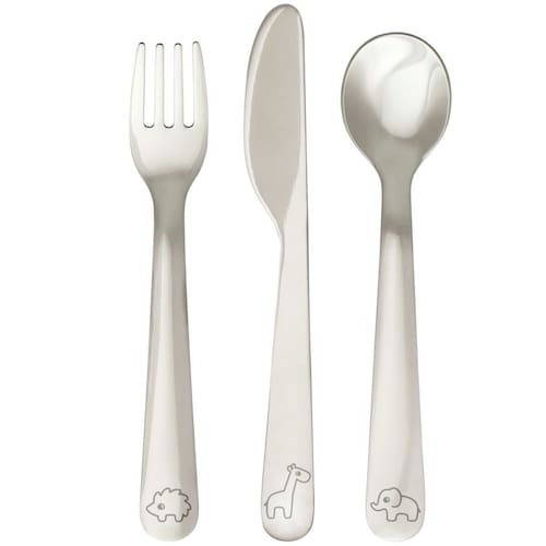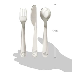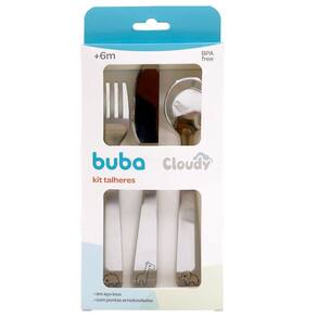 O Kit de Talheres Cloudy da Buba foi desenvolvido em aço inox, com tamanho ideal para as pequenas mãozinhas, unindo praticidade e charme em cada refeição.