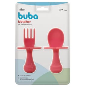 O Kit de Talher com Escudo da Buba é ideal para estimular a auto alimentação e a coordenação motora. Com design anatômico, desenvolvido especialmente para as mãozinhas pequenas, auxilia o bebê a pegar os alimentos com facilidade. Possui protetor para impedir que a criança introduza profundamente o talher na boca.