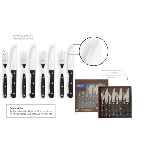 kit churrasco 8 peças brinox é um conjunto de utensílios para preparar e servir um delicioso churrasco. O kit contém:
