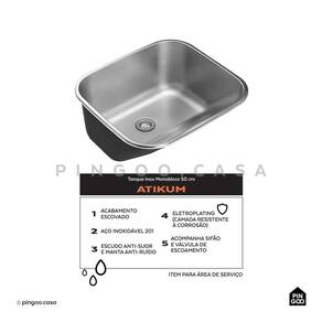 1 Tanque Inox Quadrado 43cm Aimoré Pingoo.casa - Prata