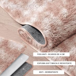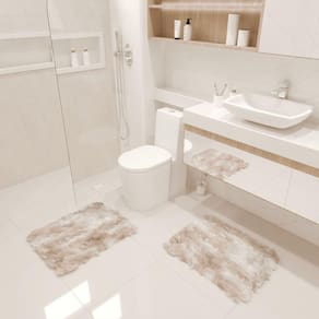 Kit Tapete Banheiro Felpudo Peludo Mesclado Bege 40 X 60 Cm