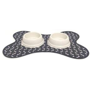 Kit de Tapete Pet, comedouro e bebedouro - Ossinho dupla face Lindo tapetinho, comedouro e bebedouro para os Pets cheios de estilo. Tapetinho para usar embaixo do pratinho de ração e água, para manter tudo limpinho, organizado e ainda decorar o seu cantinho. Possui um excelente acabamento e um belo design, que torna a refeição do animal mais prática e higiênica. Tapete dupla face, feito com tecido 100% gorgurinho, com acabamento em viés, lavável e super prático. Comedouro e bebedouro na cor bege. Medidas aproximadas: tapete 22 cm x 16 cm, comedouro 500 ml, bebedouro 500 ml Cor tapete: preto. Seu Pet vai adorar Ideal para Pets de pequeno e médio porte. Marca: Não Informado