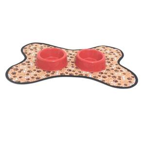 Kit Tapete Comedouro/Bebedouro - Marrom E Vermelho