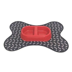Kit de Tapete Pet, comedouro e bebedouro - Ossinho dupla face Lindo tapetinho, comedouro e bebedouro para os Pets cheios de estilo. Tapetinho para usar embaixo do pratinho de ração e água, para manter tudo limpinho, organizado e ainda decorar o seu cantinho. Possui um excelente acabamento e um belo design, que torna a refeição do animal mais prática e higiênica. Tapete dupla face, feito com tecido 100% gorgurinho, com acabamento em viés, lavável e super prático. Comedouro e bebedouro duplo na cor vermelha. Tapete: preto. Medidas aproximadas: tapete 22 cm x 16 cm, comedouro duplo 300 ml, Seu Pet vai adorar Ideal para Pets de pequeno e médio porte. Marca: Nica pet
