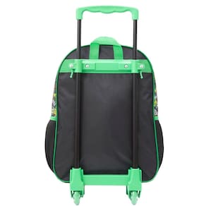 Mochila de rodinha: Confeccionada em poliéster Possui a frente em pvc estampada Rodinhas em gel Bolso lateral para garrafa Alça carrinho regulavél