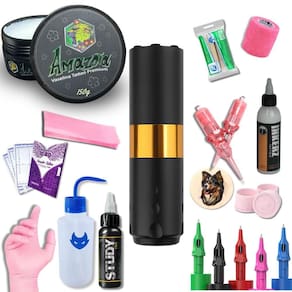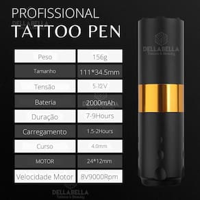 Kit tattoo iniciante completo pen dourada bateria tatuagem Conteúdo do kit: 1- máquina pen: profissional e fácil de usar. 2- bateria: portabilidade garantida 3- tinta preta 30ml: para obras rigorosas. 4- luva nitrílica: proteção total durante a tatuagem. 5- bandagem: cicatrização adequada assegurada. 6- cartucho: precisão e praticidade. 7- vaselina: deslize suavemente da agulha. 8- transfer stencil: desenhos precisos em um instante. 9- papel hectográfico: transforme suas ideias em arte. 10- abaixador de língua: aplicação uniforme sem esforço. 11- batoques: para mistura suas cores favoritas. 12- protetor de máquina: mantenha sua máquina segura 13- pele artificial: treine antes de tatuar de verdade. 14- almotolia: mantenha a limpeza durante o processo. 15- cartucho caneta: perfeito para iniciantes. Principais características: aplicação: tatuagem e . Tensão: ela pode ser projetada para operar em uma ampla faixa de tensão, intermitente de 5 a 12 volts. Isso oferece flexibilidade ao artista para ajustar a máquina de acordo com suas preferências e necessidades específicas de trabalho. Compatibilidade de agulhas: a máquina pen wireless é compatível com uma variedade de configurações de cartuchos, permitindo ao artista explorar diferentes técnicas e estilos de tatuagem. Ela pode suportar tanto cartuchos traçados quanto de sombreamento. Conexão: a máquina pen possui uma bateria integrada que tem autonomia de 6h a 7h de trabalho, dependendo da tensão. Material: a estrutura principal da máquina pen é feita de alumínio de aviação de alta qualidade, o que a torna durável e leve ao mesmo tempo. Peso e dimensões: máquina extremamente leve, pesa apenas 156 gramas, enquanto as dimensões podem estar na faixa de comprimento de cerca de 12 a 13 centímetros e diâmetro de cerca de 2,5 a 3 centímetros. Especificações Peso: 156 gramas Tamanho: 11134,5mm Tensão gama: 5-12v Bateria capacidade: 1800mah Bateria vida: 6-7 horas Carregando o tempo: 1.5-2 horas Viagem: 4.0mm Tamanho do motor: 2412mm : 6 meses.