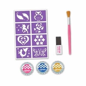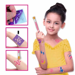 Kit Tatuagem Temporária Infantil - Tattoo Collection - Glitter - DM Toys: as crianças podem incrementar o estilo com a linha Tattoo Collection! Com 08 stencils adesivos de formatos diferentes, 03 potes de glitter, 01 cola e 01 pincel para fazer lindas tatuagens com glitter e arrasar no visual! As tatuagens temporárias Tattoo Collection da DM Toys são lúdicas, coloridas, atóxicas e divertidas. Aprovadas pelo INMETRO, são perfeitas para divertir a criançada e mexer com a imaginação. Detalhes: • Um conjunto para criar tatuagens coloridas temporárias • O produto é totalmente seguro para a pele • As tatuagens são facilmente laváveis com água e sabão • 01 pincel • 01 cola para glitter • 03 potes de glitter • 08 stencils adesivos de formatos diferentes Instruções de como brincar? 1) Destaque o stencil da carte 2) Cole o stencil no local que desejar fazer a tatuagem e aplique a cola no espaço. Retire o stencial após 1 minuto 3) Aplique o glitter por cima da cola com a ajuda do pincel. Retire o stencil e remova o excesso de glitter com o pincel 4) Para retirar a tatuagem da pele lave com água e sabão Informações: • Produto: Kit Glitter Tattoo Collection • Marca: DM Toys • Coleção: Tattoo Collection • Tipo: Tatuagem Adesiva para Crianças • Categoria: Beleza e Moda Infantil • Subcategoria: Tatuagens Infantis • Conteúdo: - 01 pincel - 01 cola para glitter - 03 potes de glitter - 08 stencils adesivos de formatos diferentes • Recomendação: para crianças a partir de 05 anos de idade Especificações: • Referência: DMT6575 • Código de Barras: 7899205965756 • Embalagem (C x A x L): 13 cm x 24 x 04 cm • Embalagem (Peso): 0.078 kg • Material / Composição: - Stencil adesivo: PVC - Glitter: PET, PU e corantes - Cola: Água, PVP, estireno, conservantes e emulsificantes • Registro: 003 965/2023 • Certificado: Órgãos Autorizados - OCP´S (Organismos de Certificação de Produtos) Aviso: • As imagens são meramente ilustrativas • Os pesos, tamanhos e medidas são aproximados • As cores e estampas dos produtos podem ter variações • As informações são de responsabilidade do fabricante ou fornecedor Ean: 7899205965756