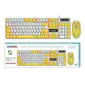 O teclado com sistema de membrana DW-450 possui função que acende o ''Led RGB'' deixando ele muito mais bonito. Sem contar que é possível melhorar seu desempenho no seu jogo. Com conexão USB compatível com todos sistemas operacionais e com os consoles do mercado. Ele tem a base de Metal e suporte para celular e possui as teclas e Ç . Por fim ele tem um alto desempenho de resposta das teclas, dando aquela sensação de profissionalidade com lindo design poderoso para sua máquina Iluminação LED RGB - Digitação confortável e precisa - Alta qualidade com excelente desempenho - Fino acabamento - Plug and Play, não requer driver de instalação Marca: DURAWELL Modelo: DW-4500 ESPECIFICACOES TECLADO: Marca: DURAWELL Modelo: DW-450 Cor: colorida Sistema: Membrana Tipo de conexão: Com Fio Conector: Usb Tipo do cabo usb: Emborrachado Padrão: ABNT2 Quantidade de teclas; 107 Estilo das teclas: Suspenso Acabamento: Plástico Iluminação led Rgb: altera cor automaticamente, sem escolha de cor Medidas do teclado: 4 x 13 x 44 cm A x L x P Cabo:1,50 m Ajuste de ângulo: Sim 2 posições Compatível: Windows 8/ 10/ 7/ Vista/ XP/200/ OSX/ 10.2 ou superior ESPECIFICACOES MOUSE: Marca: DURAWELL Cor: colorida Para jogos DPI 3200 Número de botões: 4 Tipo de conexão: Com fio Tipo de cabo usb: Emborrachado Conector: Usb Led: Sim altera cor automaticamente, sem escolha de cor Medidas do mouse: 4 x 7 x 12 A x L x C Cabo:1,50 m