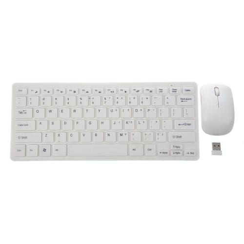 Kit Teclado e mouse sem fio ultra-fino desktop/laptop teclado e mouse, tamanho Mini, design moderno ultra-fino muito requintado. (Branco) Cada conjunto mouse e teclado set tem o ID de rede, o mouse adota a tecnologia AVL infravermelho, com mais precisão e fluentemente. O mouse tem a adaptação forte revestimento de superfície, que é em branco, preto, vermelho, superfície lisa, etc. Para o trabalho, O mouse pode corresponder automaticamente o ID usa a inteligência avançada tecnologia de rede sem fio, o teclado e o mouse não são mutuamente interferiu. O pressuposto de tecnologia de salto de freqüência de transmissão, em um escritório pode suportar 32 dispositivos sem perturbar o outro. O teclado pode auto para dormir quando ocioso. Quando a bateria é removida, o mouse pode liberar o código para corresponder. Especificações técnicas: freqüência de portadora sem fio: 2402 ~ 2480 mhz canal sem fio: 16 (automática hopping) USB Ultra- Nano: 10 m Material: ABS cor branca Bateria do teclado: 3 x uma pilhas AA (não incluídas) Mouse bateria: 2 x pilhas AAA (não incluídas) corrente de trabalho do mouse: 3 V = 10MA corrente de trabalho do teclado: 3 V = 3MA nota: Por favor não manter o dispositivo Bluetooth perto do de 2.4 ghz. Um transmissor de rádio pode ser sinal eletromagnético, um pacemaker corpo instrumento auxiliar relacionado, por favor tenha cuidado para gerar. A superfície Áspera e médio reflexivo vai afetar o desempenho do mouse. Do não tente desmontar a unidade. A Longo Prazo, se não for usado, remova a bateria ou tomar a desligar. Por favor usar algodão macio e seco para limpar a unidade. O pacote inclui: 1 x Miniteclado 1 x Mouse Sem Fio 1 x Teclado Capa Protetora 1 x USB (bateria não incluída)