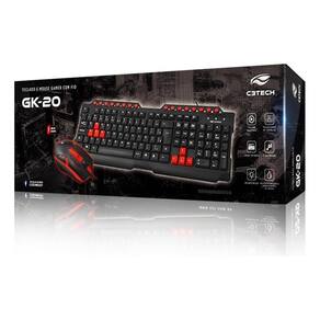 Tenha muito mais conforto na hora de joga com o kit teclado e mouse gamer GK-20BK, com design moderno e resistente. O mouse possui conexão USB, led vermelho, sensor óptico de até 1200 dpi ajustáveis, formato ergonômico e 4 botões para um desempenho rápido e contínuo. O teclado padrão ABNT 2 contas com conexão USB e 107 teclas, sendo 16 teclas de atalhos e teclas gamer em vermelho.