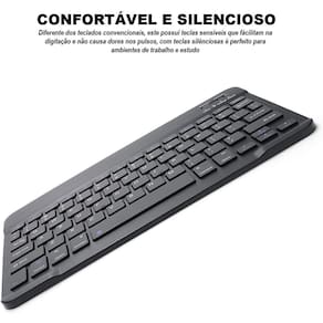 Características do Produto: - Cor: Preto; - Material: Plástico e Componentes Eletrônicos; - Conexões Versáteis: Compatível com Bluetooth 3.0 e USB sem fio, funcionando em diferentes dispositivos e sistemas operacionais; - Baterias Recarregáveis: Economia e praticidade com baterias de longa duração teclado com 420mAh e mouse com 150mAh ; - Uso Prolongado: Mouse com autonomia de até 150 horas e teclado com autonomia de 100 horas; - Design Slim: Estilo moderno e compacto, ideal para mesas minimalistas e espaços reduzidos; - Durabilidade: Vida útil de 5 milhões de toques no teclado e 3 anos para as baterias de lítio; - Conforto e Precisão: Força das teclas ajustada em 8010g para maior conforto e precisão durante a digitação.