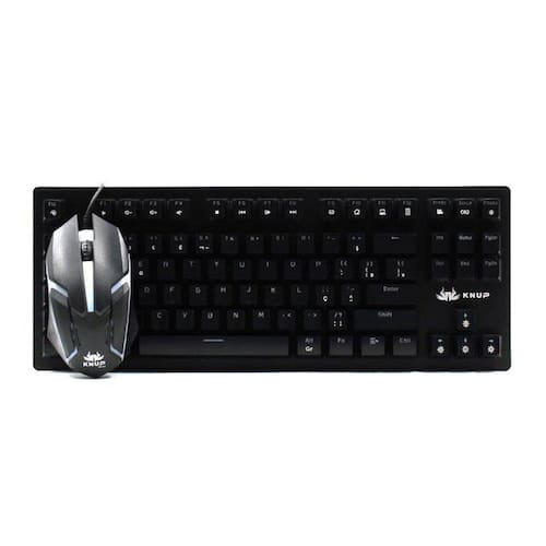 Kit Teclado Mecânico Gamer + Mouse Gamer Preto Teclado Mecânico Gamer KP-2052 de alto desempenho, design ergonômico, possui 12 teclas multimídia, corpo em metal, todas as teclas Anti-Ghosting, controle de velocidade e bloqueio à tecla Windows. Especificações: - Todas as teclas com função Anti-Ghosting - Ajustes do brilho e iluminação LED - Padrão Brasil ABNT2 - Cabo resistente em nylon - Keycaps suspensas - Conexão USB - Quantidade de teclas: 87