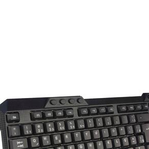 Teclado: Layout das teclas ABNT2 Teclas de alta qualidade Resistente a pequenos derramamentos de líquidos Tipo: Membrana Números de teclas: 107 Teclas de Atalhos: 8 Teclas Multimídias: Reproduzir e Pausar / Parar / Faixa Anterior / Próxima Faixa / Aumentar Volume / Diminuir Volume / Mudo / Página Inicial Serigrafia das teclas: Silk 1 Pilha AA Durabilidade da tecla: 80 milhões de acionamentos Não possui Led para Scrow Lock, NumLock e CapsLock