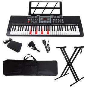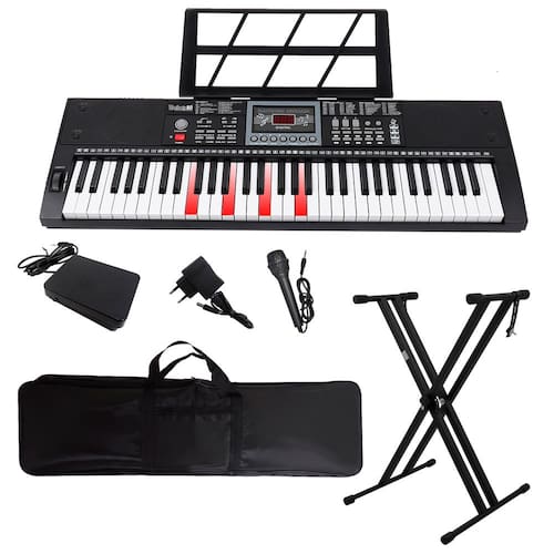 O teclado Rhythmic80 é um instrumento musical versátil e completo, ideal para músicos iniciantes e intermediários. Com 61 teclas iluminadas distribuídas em 5 oitavas, oferece uma experiência musical abrangente. Suas teclas de tamanho confortável (11 x 1,9 cm) proporcionam uma execução precisa. O teclado possui 200 timbres e 200 ritmos diferentes, além de 80 músicas de demonstração para auxiliar no aprendizado. Equipado com visor LED, conectividade Bluetooth e MIDI, permite diversas possibilidades de uso. Inclui funções especiais como sustain, vibrato, transposição e modo de lição, além de recursos de gravação e reprodução. Possui entradas para microfone, pedal e saída de áudio. Pode ser alimentado por fonte 5V ou 4 pilhas AA. É compacto e fácil de transportar.Acompanha suporte em x, capa para transporte e pedal sustain.Especificações- Marca: Rhythmic- Modelo: Rhythmic80- Origem: China- Cor: Preto- Quantidade de teclas: 61- Quantidade de oitavas: 5- Tamanho das Teclas: 11 x 1,9 cm- Visor: LED- Ritmos: 200- Timbres: 200- Músicas de Demonstração: 80- Bluetooth- MIDI- Função Lição - Função de gravação e reprodução- Funções: Sustain, Vibrato, Transposição- Alimentação: Fonte 5V, 4 Pilhas AA- Conectividade: Entrada/ Saída de áudio, Microfone, Pedal, USB-C, USB-A- Dimensões: 79,5 x 26,5 x 7,5 cm- Peso Aprox.: 1,95 kg (sem pilhas)Conteúdo da Embalagem- 01 Teclado Portátil 61 Teclas Rhythmic 80- 01 Porta Partitura- 01 Microfone- 01 Cabo de Áudio- 01 Fonte Bivolt 5V USB-C- 01 Capa - 01 Suporte em x- 01 Pedal Sustain- Adesivos com notas, manual de instruções- Dimensões da Embalagem (AxLxP): 13 x 45 x 96 cm*imagens meramente ilustrativas