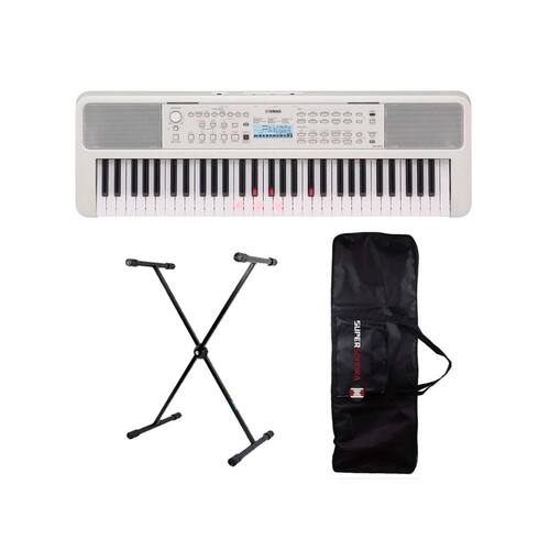1X - Teclado Musical Yamaha EZ-310 Branco 61 Teclas 1X - Adaptador de Energia Bivolt 110/220 1X - Estante de Partituras 1X - Suporte Em X 1X - Capa Para Piano