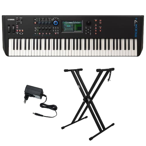 O MODX7+ é um sintetizador compacto, leve, com 76 teclas, com todos os sons, splits, zonas e layers que que os teclistas precisam para poderem fazer a diferença no palco, estúdio ou transmissão em live streaming.+ Polifonia: O MODX+ possui polifonia AWM2 estéreo de 128 notas e polifonia FM-X de 128 notas. Isso permite maior tocabilidade e capacidade de design sonoro.+ Memória: MODX+ possui memória flash interna de 1,75GB para samples do usuário, ou mesmo bancos de sons de outros sintetizadores.+ Tocabilidade: Para maior controle durante a performance, as alavancas/roldanas de Pitch e Modulation do MODX+ possuem acabamento + aderente em borracha.Acompanha suporte em X para Teclado New York X2.Especificações Teclado- Marca: Yamaha- Modelo: MODX7+- Origem: China- Cor: Preto- Tipo de teclado: Sintetizador- Quantidade de teclas: 76- Tipo: teclado semipesado- Musicas: 128- Polifonia: AWM2: 128 (máx.; formas de onda estéreo/mono) FM-X: 128 (máx.)- Efeitos: Reverb, Variação, Inserção (A, B), Master Effect, A/D x 83, Master EQ (5 bandas), 1ª parte EQ (3 bandas), 2ª parte EQ (2 bandas)- Consumo de energia: 16 W- Memória: Aprox. 1,75GB- Fonte de Energia: PA-150B ou equivalente recomendado pela Yamaha- Dimensões (LxAxP): 114,4 x 13,4 x 33,1 cm- Peso: 7,4 kgEspecificações suporte- Marca: New York- Tipo: X- Modelo: X2- Cor: Preta- Ferragem: Dupla Reforçada- Utilização: Teclados Musicais, Pianos Digitais- Altura Máxima: 96 cm- Altura Mínima: 32 cm- Largura Máxima: 94 cm- Largura Mínima 26,5 cm- Peso Aprox.: 2,200 kgConteúdo da Embalagem- 01 Teclado Sintetizador MODX7+ Yamaha- 01 Fonte Bivolt- 01 Suporte em X- Manual do Proprietário- Dimensões da Embalagem (AxLxP): 26 x 56 x 130 cm*imagens meramente ilustrativas