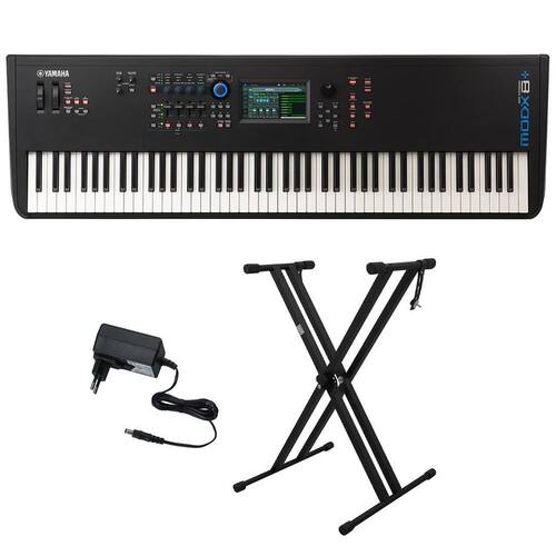 O MODX8+ é um sintetizador compacto, leve, com 88 teclas contrapesadas com ação de piano, com todos os sons de instrumentos e sintetizadores que os pianistas precisam para poderem fazer a diferença no palco, estúdio ou transmissão em live streaming.+ Polifonia: O MODX+ possui polifonia AWM2 estéreo de 128 notas e polifonia FM-X de 128 notas. Isso permite maior tocabilidade e capacidade de design sonoro.+ Memória: MODX+ possui memória flash interna de 1,75GB para samples do usuário, ou mesmo bancos de sons de outros sintetizadores.+ Tocabilidade: Para maior controle durante a performance, as alavancas/roldanas de Pitch e Modulation do MODX+ possuem acabamento + aderente em borracha.Acompanha suporte em X para Teclado New York X2.Especificações - Marca: Yamaha- Modelo: MODX8+- Origem: China- Cor: Preto- Tipo de teclado: Sintetizador- Quantidade de teclas: 88- Tipo: Teclado GHS- Musicas: 128- Polifonia: AWM2: 128 (máx.; formas de onda estéreo/mono) FM-X: 128 (máx.)- Efeitos: Reverb, Variação, Inserção (A, B), Master Effect, A/D x 83, Master EQ (5 bandas), 1ª parte EQ (3 bandas), 2ª parte EQ (2 bandas)- Consumo de energia: 16 W- Memória: Aprox. 1,75GB- Fonte de Energia: PA-150B ou equivalente recomendado pela Yamaha- Dimensões (LxAxP): 133,3 x 16 x 40,4 cm- Peso: 13,8 kgEspecificações suporte- Marca: New York- Tipo: X- Modelo: X2- Cor: Preta- Ferragem: Dupla Reforçada- Utilização: Teclados Musicais, Pianos Digitais- Altura Máxima: 96 cm- Altura Mínima: 32 cm- Largura Máxima: 94 cm- Largura Mínima 26,5 cm- Peso Aprox.: 2,200 kgConteúdo da Embalagem- 01 Teclado Sintetizador MODX8+ Yamaha- 01 Fonte Bivolt- 01 Suporte em X- Manual do Proprietário- Dimensões da Embalagem (AxLxP): 21 x 63 x 151 cm*imagens meramente ilustrativas