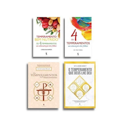 Este kit reúne quatro livros sobre os temperamentos humanos, com abordagens em aspectos diferentes: - Temperamento bem nutrido - Os 4 temperamentos na alimentação dos filhos, de Carolina Barros; - Os 4 temperamentos na educação dos filhos, de Italo Marsili; - Os temperamentos no matrimônio, de Art Bennett e Laraine Bennett; - O temperamento que Deus lhe deu, de Art Bennett e Laraine Bennett. Ean: 0000000078672