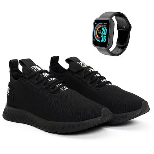 Kit Tênis Academia Masculino Caminhada Treino Malhar Musculação Olymp BF Shoes + Smartwatch D20 - 41 - Preto