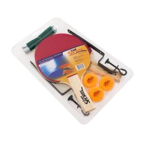 O conjunto acompanha Kit com 2 raquetes + rede +Suporte + 3 Bolinhas.