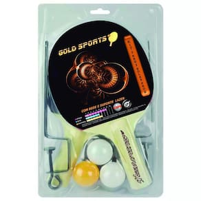 O Kit Tenis de Mesa Gold Sports Lazer, 2 Raquetes 3 Bolas, Suporte com Rede, possui 2 raquetes tênis de mesa sendo 1 lado borracha com lisa e esponja e outro lado borracha lisa 3 bolas em PVC 3 e suporte e rede retrátil. Nossas raquetes tênis de mesa são projetadas com cabo clássico lixado, toque macio e antiderrapante para uma aderência confortável. A raquete de tênis de mesa Gold Sports lazer é feita de madeira natural ecológica.