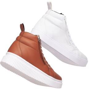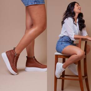 KIT COM DOIS PARES UM PAR BRANCO E UM PAR CARAMELO. = 2 Botas Feminina Estilo Academia Com Solado De Borracha.Descubra o Charme do Conforto para seus treinos ou passeio com nossos coturnos feminino.Características Principais:Cabedal: Sintético.Forro: Tecido Antibacteriano.Palmilha: Confort Eva 4mm.Sola: Borracha Antiderrapante.Altura Da Sola baixa: 3 Centrimetros (branca).Altura Da Sola Plataforma: 5 Centrimetros (caramelo).Metais: Antioxidante.Ajuste: Cadarço Fios De Algodão E Zíper Reforçado.Peso: 0.800g cada par.Atenção na hora de escolher seu tamanho, o Tênis possui FORMA NORMAL, pedir o número que já está acostumado a usar, temos aqui a abaixo uma tabela aproximada de cm da palmilha para usarem como referência.TAMANHO DE PALMILHA.33 - 22.9 cm.34 - 23.2 cm.35 - 24.0 cm.36 - 24.5 cm.37 - 25.0 cm.38 - 26.0 cm.39 - 27.0 cm.40 - 27.5 cm.Não perca a chance de adicionar um toque de elegância e conforto ao seu guarda-roupa. Clique em "Comprar Agora" e experimente a combinação perfeita de estilo e comodidade com nossos Coturnos Femininos. Seu próximo par de sapatos favorito está a apenas um clique de distância!.