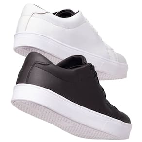 1 PAR TENIS PRETO 1 PAR TENIS BRANCODescubra o Charme do Conforto para seus pés com nosso sapato femininoCaracterísticas Principais:Cabedal: Sintético Forro: Tecido AntibacterianoPalmilha: Confort Eva 4mmSola: Borracha AntiderrapanteAltura Da Sola: 3 CentrimetrosMetais: AntioxidanteAjuste: Cadarço Fios De AlgodãoPeso: 0.600g CADA PAR.Atenção na hora de escolher seu tamanho, o Tênis possui FORMA NORMAL, pedir o número que já está acostumado a usar, temos aqui a abaixo uma tabela aproximada de cm da palmilha para usarem como referência.TAMANHO DE PALMILHA33 - 22.9 cm 34 - 23.2 cm 35 - 24.0 cm36 - 24.5 cm37 - 25.0 cm38 - 26.0 cm39 - 27.0 cm40 - 27.5 cmNão perca a chance de adicionar um toque de elegância e conforto ao seu guarda-roupa. Clique em "Comprar Agora" e experimente a combinação perfeita de estilo e comodidade com nossos casuais Femininos. Seu próximo par de sapatos favorito está a apenas um clique de distância!