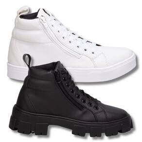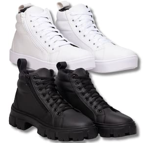 KIT COM DOIS PARES UM PAR BRANCO E UM PAR PRETO. = 1 Bota Feminina Branca Estilo Academia Com Solado De Borracha.= 1 Coturno Feminino anke boot Preto.Descubra o Charme do Conforto para seus treinos ou passeio com nossos coturnos femininoCaracterísticas Principais:Cabedal: Sintético Forro: Tecido AntibacterianoPalmilha: Confort Eva 4mmSola: Borracha AntiderrapanteAltura Da Sola baixa: 3 Centrimetros (Branca).Altura Da Sola Plataforma: 5 Centrimetros (Preta).Metais: AntioxidanteAjuste: Cadarço Fios De Algodão E Zíper ReforçadoPeso: 0.800g cada par.Atenção na hora de escolher seu tamanho, o Tênis possui FORMA NORMAL, pedir o número que já está acostumado a usar, temos aqui a abaixo uma tabela aproximada de cm da palmilha para usarem como referência.TAMANHO DE PALMILHA33 - 22.9 cm 34 - 23.2 cm 35 - 24.0 cm36 - 24.5 cm37 - 25.0 cm38 - 26.0 cm39 - 27.0 cm40 - 27.5 cmNão perca a chance de adicionar um toque de elegância e conforto ao seu guarda-roupa. Clique em "Comprar Agora" e experimente a combinação perfeita de estilo e comodidade com nossos Coturnos Femininos. Seu próximo par de sapatos favorito está a apenas um clique de distância!