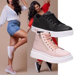 Kit 2 pares Tenis Feminino Com Sola Anti-Derrapante - KIT FEMININO DOIS PARES LINDOS1 Tenis Cano Curto Preto1 Coturno Sport RosaDescubra o Charme do Conforto para seus pés com nosso sapato femininoCaracterísticas Principais:Cabedal: Sintético Forro: Tecido AntibacterianoPalmilha: Confort Eva 4mmSola: Borracha AntiderrapanteAltura Da Sola Tenis: 3 Centrimetros (PRETO).Altura da Sola Botinha: 5 centimetros (ROSA).