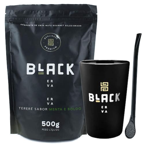 Kit Tereré Erva Menta E Boldo + Copo Preto + Bomba Preta Black Erva Erva Mate Tereré Black Erva 500g Sabor Menta E Boldo O Tereré possui efeito diurético, que colabora no processo de redução da gordura corporal. A bebida estimula o aumento o gasto energético dos consumidores, por proporcionar maior força muscular e, consequentemente, melhor desempenho nos treinos. Você irá se surpreender com sabor marcante e refrescante. A erva menta e boldo reúne o sabor e aroma incomparável da hortelã equilibrada com o sabor do boldo. Pacote com 500g com sistema zip lock para maior conservação do produto. Modo de Preparo: - Coloque 3/4 de Black Erva na guampa, cuia ou copo. - Incline e acomode a Black Erva sobre um lado da guampa, cuia ou copo. Deixe a bomba no local adequado. - Tome com água gelada a gosto e saboreie sua Black Erva. Consumir com água gelada para melhor aproveito do sabor. ESPECIFICAÇÕES TÉCNICAS: - Marca: Black Erva - Ilexx paraguariensis Erva Mate , Aroma Artificial de Menta Peperita, Pneumos Boldo - Padronização Erva Mate Folha 35% mínimo, outras partes do ramo 65% máximo - Não contém glúten Copo Cuia Para Terere Black Erva Preto Fosco 350ml Para você que quer apreciar uma deliciosa erva mate, sozinho ou com seus amigos, com essa cuia você vai fazer isso no maior estilo A cuia possui a aparência Preta com a estampa da marca Black Erva. Possui a superfície lisa e fácil de limpar. ESPECIFICAÇÕES TÉCNICAS: - Produto com ótimo acabamento - Resistente e com alta durabilidade - Material: Acrílico - Capacidade: 350ml - Altura: 11,5cm - Diâmetro Boca: 8cm - Peso: 60g Bomba Para Tereré E Chimarrão Tradicional Black Erva Preto A Black Erva é o novo conceito para terere no Brasil, com produtos de alta qualidade Essa bomba tradicional e prática possui grande durabilidade e é extremamente bonita. Pode ser Utilizado para o consumo de Erva Mate aonde você estiver: seja entre amigos, no trabalho ou em casa. ESPECIFICAÇÕES TÉCNICAS: - Material de alta qualidade e pintura epóxi um revestimento de alta resistência - É de fácil utilização e limpeza, não acumula cheiro ou resíduos - Anti entupimento - Medidas: 19 x 2 cm - Cor: Preto ITENS INCLUSOS: - 1x Erva Mate Tereré Black Erva 500g Sabor Menta E Boldo - 1x Copo Cuia Para Terere Black Erva Preto Fosco 350ml - 1x Bomba Para Tereré E Chimarrão Tradicional Black Erva Preto