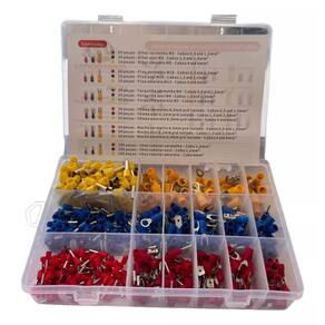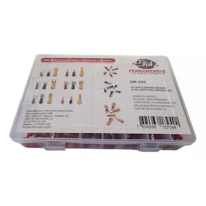 Kit Terminais elétricos ilhos tubolar + pré isolados Olhal, Garfo, Pino e Faston macho e fêmea.Conteúdo:20 peças - Olhal vermelho M5 - Cabos 0,5 até 1,5mm²20 peças - Olhal azul M5 - Cabos 1,5 até 2,5mm²10 peças - Olhal amarelo M5 - Cabos 4 até 6mm²20 peças - Pino vermelho M10 - Cabos 0,5 até 1,5mm²20 peças - Pino azul M10 - Cabos 1,5 até 2,5mm²10 peças - Pino amarelo M13 - Cabos 4 até 6mm²20 peças - Forquilha vermelho M4 - Cabos 0,5 até 1,5mm²20 peças - Forquilha azul M4 - Cabos 1,5 até 2,5mm²10 peças - Forquilha amarelo M5 - Cabos 4 até 6mm²20 peças - Fêmea vermelho 6,3mm pré isolado - Cabos 0,5 até 1,5mm²20 peças - Fêmea azul 6,3mm pré isolado - Cabos 1,5 até 2,5mm²10 peças - Fêmea amarelo 6,3mm pré isolado - Cabos 4 até 6mm²20 peças - Macho vermelho 6,3mm pré isolado - Cabos 0,5 até 1,5mm²20 peças - Macho azul 6,3mm pré isolado - Cabos 1,5 até 2,5mm²10 peças - Macho amarelo 6,3mm pré isolado - Cabos 4 até 6mm²100 peças - Ilhos tubolar vermelho – Cabo 1,5mm²100 peças - Ilhos tubolar azul – Cabo 2,5mm²100 peças - Ilhos tubolar amarelo – Cabo 6mm²1 caixa organizadora com 18 divisóriasMarca: DM Ferramentas e equipamentos automotivosTotal: 550 terminaisGarantia de 6 meses. (3 meses de garantia Legal contra defeito de fabricação e 3 meses de garantia concedido pela DM Ferramentas contra defeitos de fabricação)