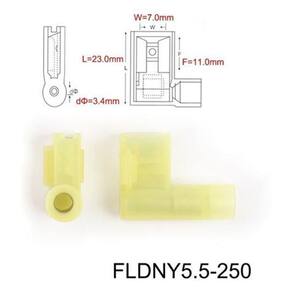 Dados técnicos Tipo: terminal bandeira Modelo: fldny5-250 Aplicação cabo e fios: 4mm a 6mm Awg: 12 a 10 Corrente: até 24a Temperatura: 105ºc - retardante de chamas Cor: amarelo