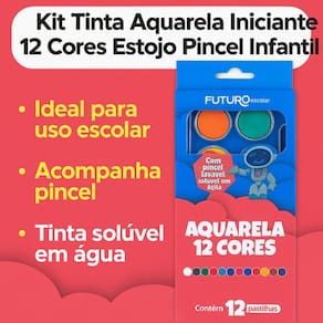 Kit Tinta Aquarela 12 Cores com Estojo + Pincel - Futuro Escolar