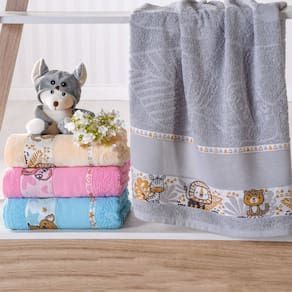 A Linha de Tolhas Infantil foi desenvolvida para proporcionar um toque macio e carrinho. Seu corpo possui desenhos jacquard em alto e baixo relevo que dão um visual super alegre e charmoso e ela possui barra com o tecido mais fechado, ideal para bordar o ponto cruz.