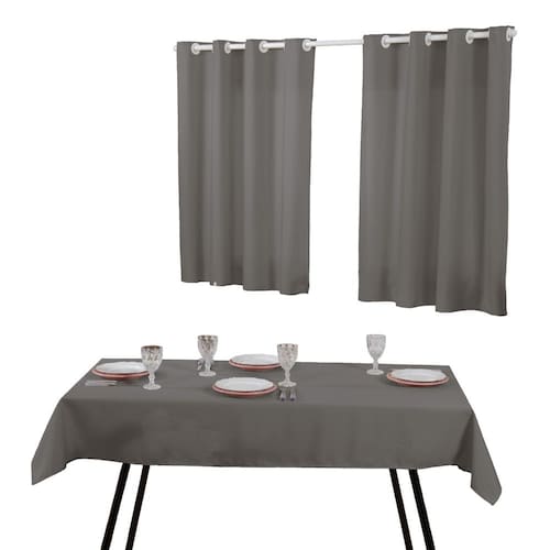 Kit Toalha De Mesa 6 Cadeiras E Cortina Cozinha 2,00x1,40 Cinza Kit de Cozinha Cortina e Toalha de Mesa 6 lugares
