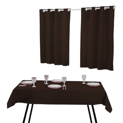 Kit Toalha De Mesa 6 Cadeiras E Cortina Cozinha 2,00x1,40 Marrom Kit de Cozinha Cortina e Toalha de Mesa 6 lugares