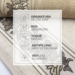 Características das toalhas: Gramatura: 350g Composição: 100% algodão, exceto na barra decorativa Tecnologia Softmax Acabamento Antipilling (tecido anti-bolinhas) Tecido pré-encolhido Toque macio e boa absorção Modelo: Liana Marca: Karsten