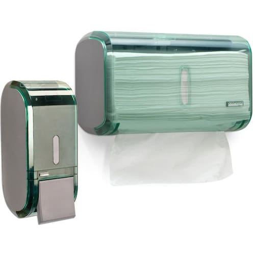 Kit Toalheiro 2D Verde + Saboneteira Compacta 400Ml