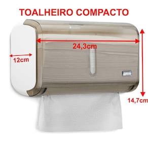 Kit toalheiro compacto premisse 2d fume + saboneteira compacta com reservatório 400ml Combo com 1 toalheiro compacto premisse urban 2d fume + 1 saboneteira compacta premisse linha urban com reservatório 400ml fume Sobre o toalheiro compacto premisse urban 2d fume Aparelho de alta tecnologia e inovação com a qualidade premisse. A linha de dispensers premisse urban possui design contemporâneo e moderno que combina linhas orgãnicas e retas facilitando a integração com o ambiente de uso. É confeccionado em termoplástico de alta resistência ao impacto. As paredes internas possuem geometria que inibem a umidade e poeira. Possui sistema de trava inteligente para abertura da tampa que inibe o vandalismo. Tem visor cristal transparente para melhor visualização do consumo e facilitar o abastecimento. Permite o uso de todas as marcas de papel existentes no mercado. Aplicação Verifique o local correto para instalar. O aparelho possui fita dupla face, limpe a áera com álcool, retire o liner protetor da fita e coloque o dispenser no azulejo; esperar 24 horas para que fixe bem. Dados técnicos - constituído em plástico com alta resistência ao impacto. - processo de produção por injeção termoplástica, garante uma melhor qualidade. - sistema de fechamento inteligente. - espaço interno com todas as paredes revestidas que garante mais higiene evitando umidade e poeira. Dimensões - largura: 24,3cm - altura: 14,7cm - profundidade: 12cm Sobre a saboneteira compacta premisse linha urban com reservatório 400ml fume A sabonteira premisse urban compacta foi desenvolvida para atender estabelecimentos, como escritórios, consultórios, residências e onde houver a necessidade de higienização. É um produto com design contemporâneo, que combina linhas orgânicas e retas e sua dimensões compactas facilitam a integração com qualquer ambiente. Possui reservatório para abastecimento de até 400ml de sabonete liquido. Aplicação Verifique o local correto para ser instalado, limpe a área com álcool, retire o liner protetor da fita e fixe o dispenser. Dados técnicos - constituído em plástico de alta resistência. - processo de produção por injeção termoplástica. - sistema de fechamento inteligente. - sistema com reservatório para abastecer. - tecla aperte com limite de curso, o qual garante eficiência na saída do sabonete com controle de quantidade. - espaço interno com todas as paredes revestidas que garante mais higiene evitando umidade e poeira. - visor central transparente para facilitar a visibilidade do sabonete, facilitando o abastecimento.