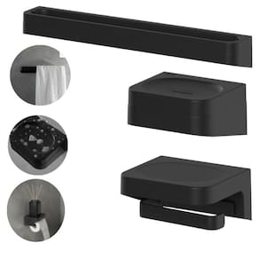 Kit Para Banheiro Linha Eleve - Saboneteira + Porta Papel Higiênico + Suporte Toalheiro de Parede com Instalação Adesiva Ultra Click Sem Furo O Kit Linha Eleve é a solução ideal para quem busca praticidade, modernidade e organização no banheiro, sem abrir mão de um design sofisticado. Com instalação 100% adesiva, você transforma seu ambiente de forma rápida, limpa e sem furos. Itens Inclusos no Kit: 1 Saboneteira de Parede com base vazada para escoamento da água, garantindo mais higiene e durabilidade do sabonete. 1 Porta Papel Higiênico com estrutura firme e suporte lateral para facilitar o manuseio do rolo. 1 Suporte Toalheiro de Parede com haste horizontal ideal para toalhas de rosto ou mãos, mantendo-as sempre ao alcance. Diferenciais do Kit Linha Eleve: Instalação com Tecnologia Ultra Click: Fixação adesiva de alta performance, sem necessidade de furar paredes ou utilizar ferramentas. Design contemporâneo e minimalista: Combina com qualquer estilo de banheiro. Material de alta resistência: Fabricado em plástico ABS de qualidade, resistente à umidade, impactos e fácil de limpar. Economia de espaço e funcionalidade: Itens organizados, acessíveis e longe do contato direto com superfícies úmidas. Benefícios: Ideal para quem mora em imóveis alugados ou prefere não danificar azulejos e revestimentos. Não enferruja, não mancha e mantém aparência de novo por muito mais tempo. Fácil remoção sem deixar marcas quando necessário . Perfeito para instalação em banheiros, lavabos, áreas de serviço ou lavatórios. Modo de Aplicação: Limpe a superfície lisinha, seca e livre de poeira ou gordura . Remova a película do adesivo Ultra Click. Posicione o produto e pressione por alguns segundos. Aguarde 24 horas antes de utilizar, para garantir a fixação máxima. Indicação de superfície ideal: Azulejos, vidro, mármore, porcelanato ou qualquer superfície lisa. Não recomendado para: Paredes pintadas, texturizadas, madeira rústica ou cimento.