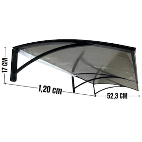 Design Moderno e Durável: Com uma profundidade de 52,5cm e uma largura de 120cm, nosso toldo é construído com policarbonato de alta resistência, oferecendo durabilidade excepcional e proteção contra raios UV.