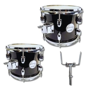 Kit tom 8 e 10 de bateria preto em madeira com caneca cromada x- pro + tom holder joint ball duplo reforçado para tons bateria 15.3