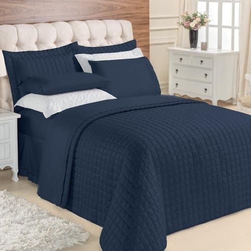 Kit Top Line Cobre Leito King 180 Fios + Jogo De Lençol - 7 Peças Marinho - Azul Marinho