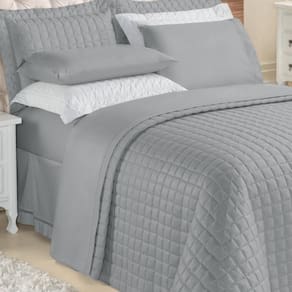 Kit Top Line Cobre Leito Queen 180 Fios + Jogo De Lençol - 7 Peças Cinza