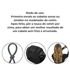 Benefícios do Kit: Modelador de Cachos sem Calor: Criar cachos incríveis nunca foi tão fácil Basta enrolar o cabelo no tubo de cetim e acordar com ondas naturais e definidas. Scrunchies de cetim: Acompanha dois scrunchies de cetim, que são elásticos envolvidos em cetim, para não marcar e danificar os fios. Touca de Cetim dupla face big: Protege os fios contra o frizz, reduz o ressecamento e mantém a definição dos cachos por mais tempo. Por seu tamanho grande, é ideal para cabelos longos e volumosos, garantindo conforto. Material de Alta Qualidade: O cetim preserva a hidratação natural dos fios, evitando o atrito e quebras durante o sono. Ideal para Todos os Tipos de Cabelo: Funciona em cabelos lisos, ondulados e cacheados, promovendo um efeito duradouro sem necessidade de ferramentas térmicas.